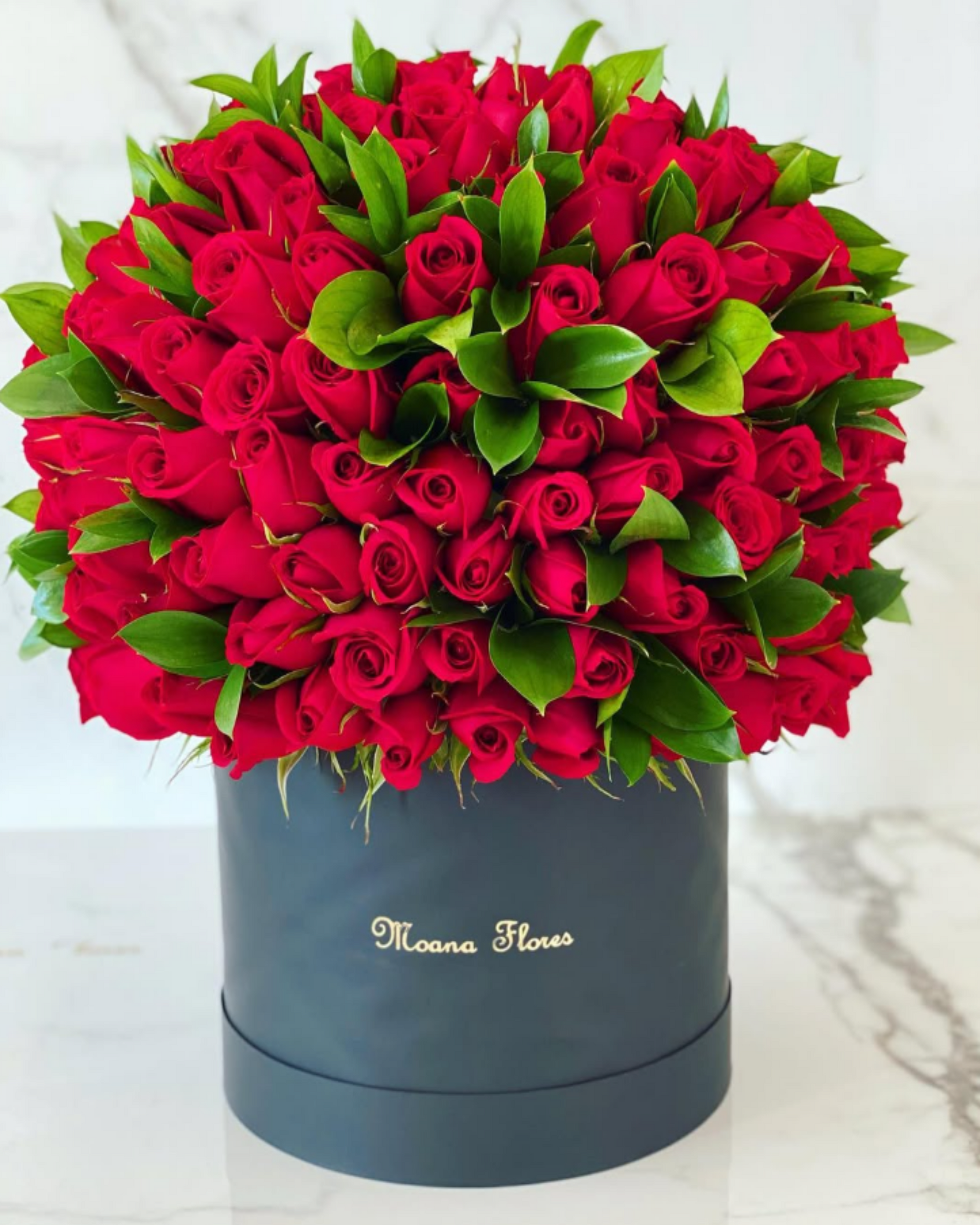 Este exquisito arreglo en forma de domo combina rosas rojas vibrantes con follaje fresco, presentado en una elegante caja circular alta negra. La combinación perfecta de color y textura crea un detalle sofisticado que expresa pasión y frescura. Ideal para sorprender y hacer inolvidable cualquier ocasión especial con un regalo lleno de estilo y emoción.
