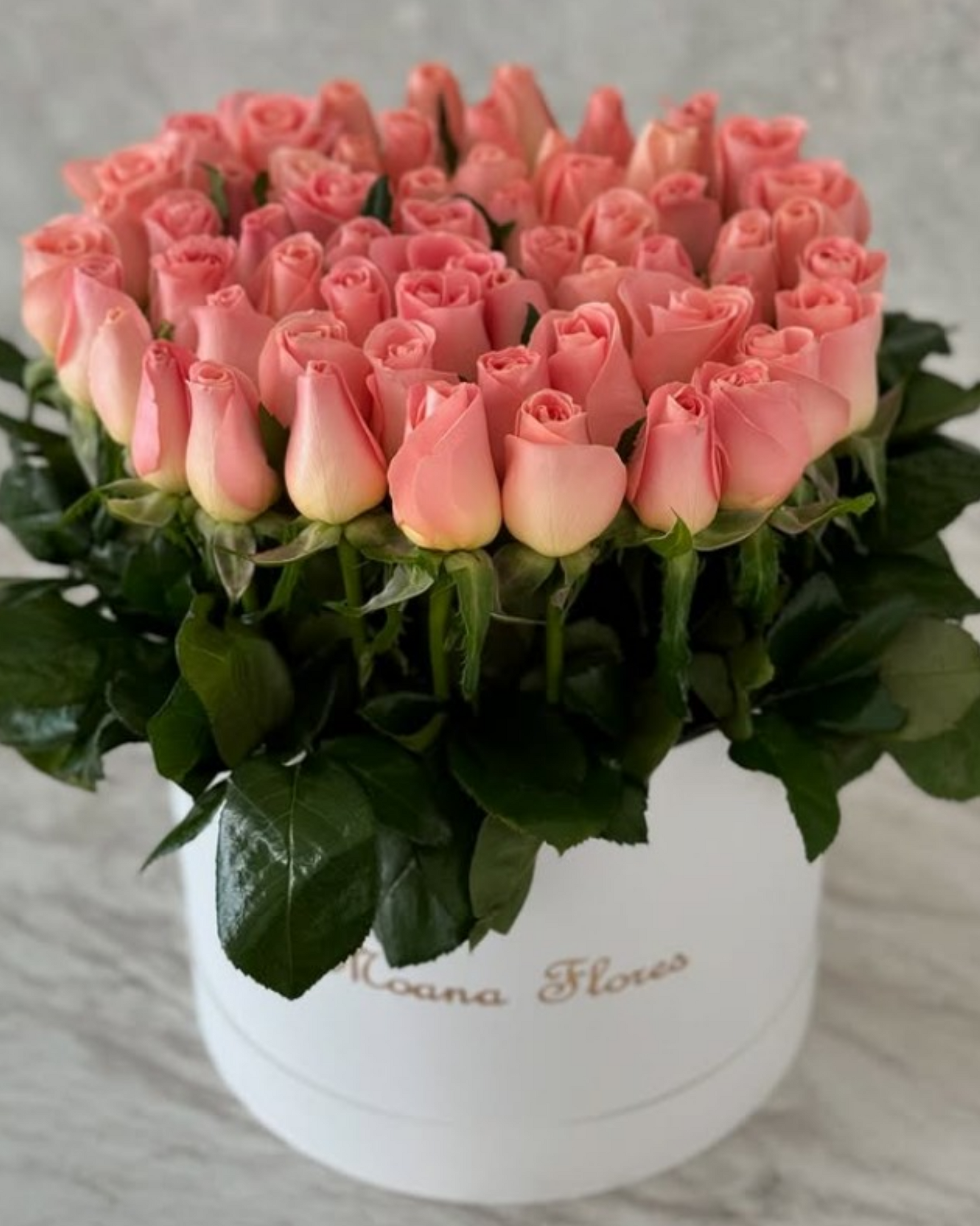 Este elegante arreglo presenta rosas hermosas acompañadas de follaje fresco, cuidadosamente dispuestas en una caja circular blanca alta. Perfecto para aportar calidez y sofisticación a cualquier espacio, este detalle floral es ideal para sorprender con un toque de frescura y estilo en cualquier ocasión especial.