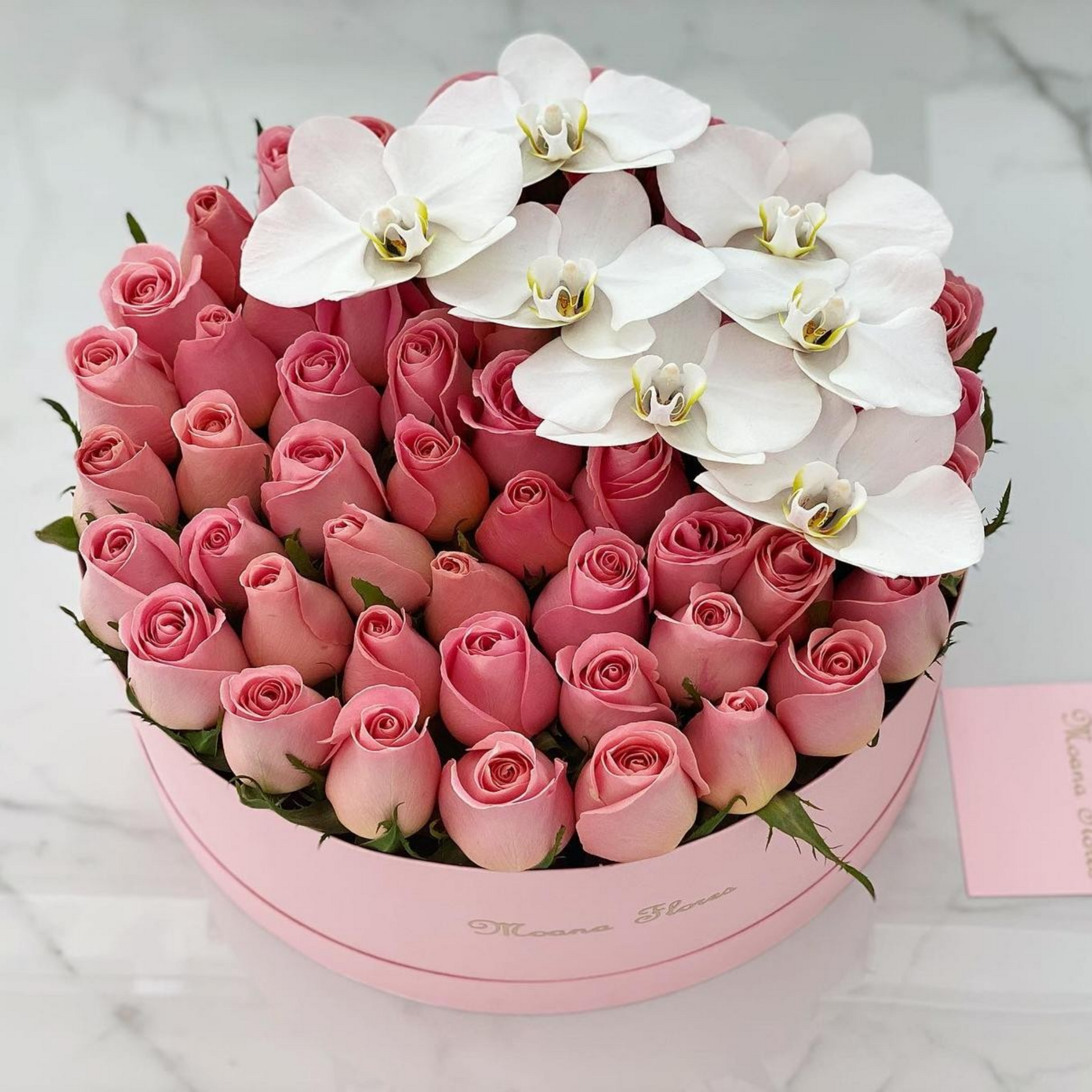 Este delicado arreglo combina rosas hermosas con orquídeas blancas, presentado en una elegante caja circular rosa. Perfecto para transmitir ternura y sofisticación, este detalle floral aporta un toque fresco y encantador, ideal para sorprender en cualquier ocasión especial.