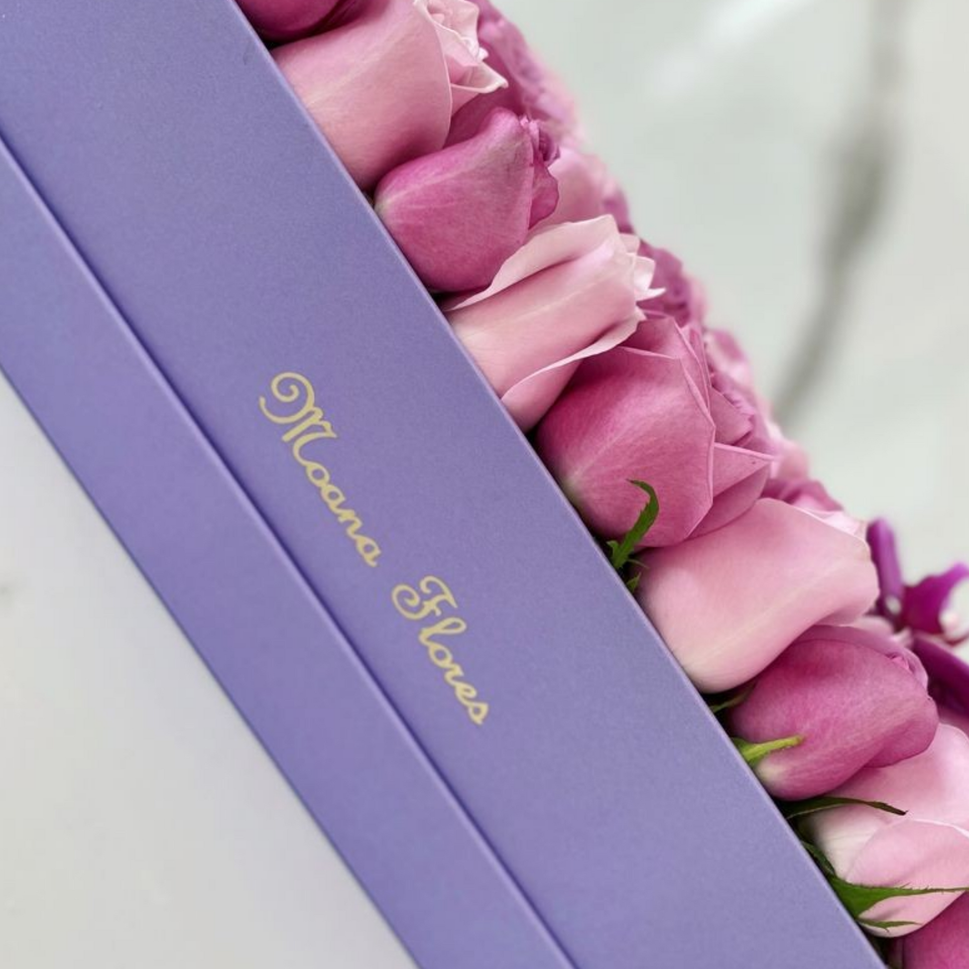 Este elegante arreglo combina rosas moradas con orquídeas moradas, presentado en una sofisticada caja rectangular morada. Perfecto para transmitir profundidad y estilo, este detalle floral aporta un toque armonioso y refinado, ideal para sorprender en cualquier ocasión especial.