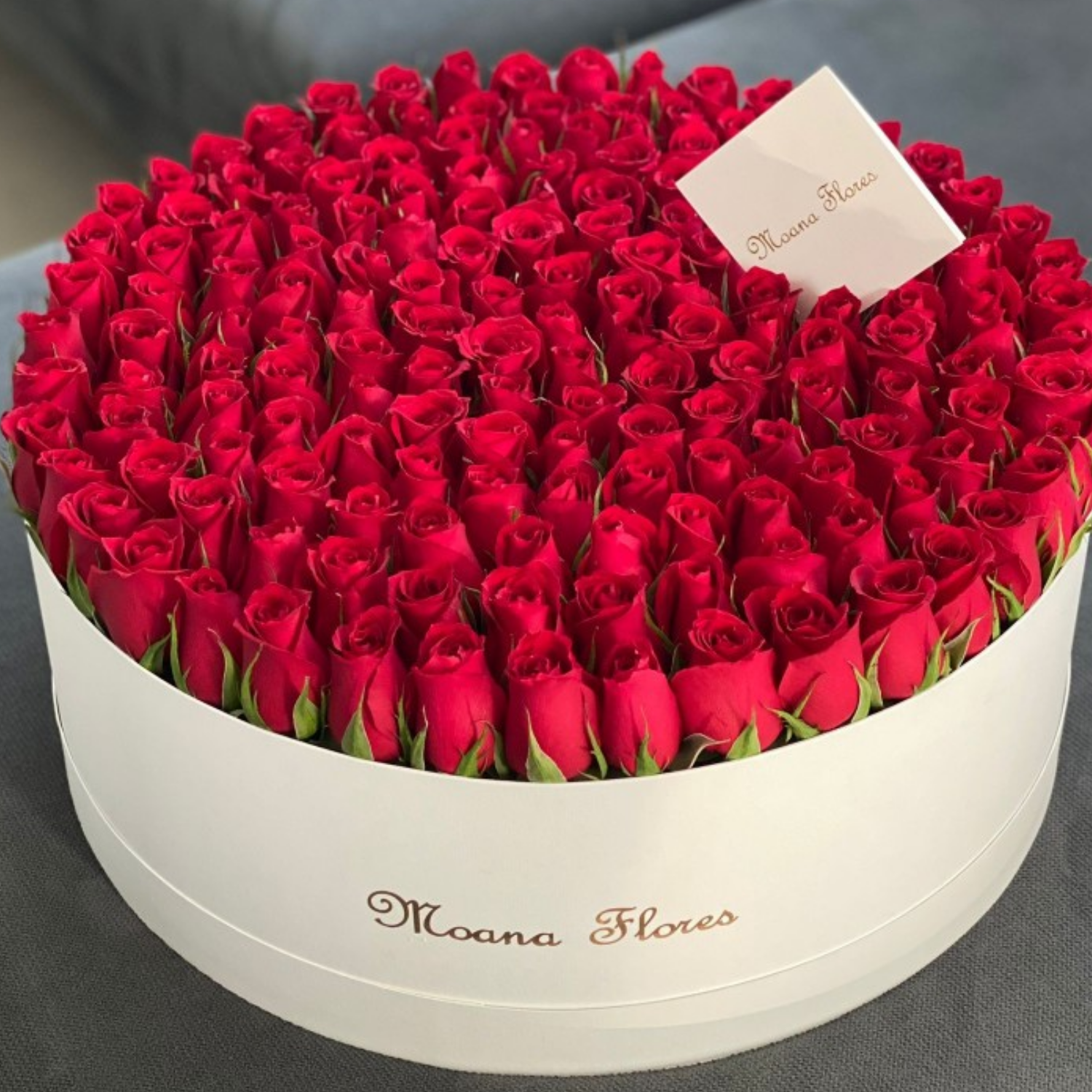 Este elegante arreglo de rosas rojas está cuidadosamente presentado en una sofisticada caja circular blanca, que resalta la intensidad y belleza de cada flor. Perfecto para expresar amor y pasión con un detalle lleno de estilo y delicadeza. Sorprende a esa persona especial con un regalo que hará cualquier ocasión inolvidable.