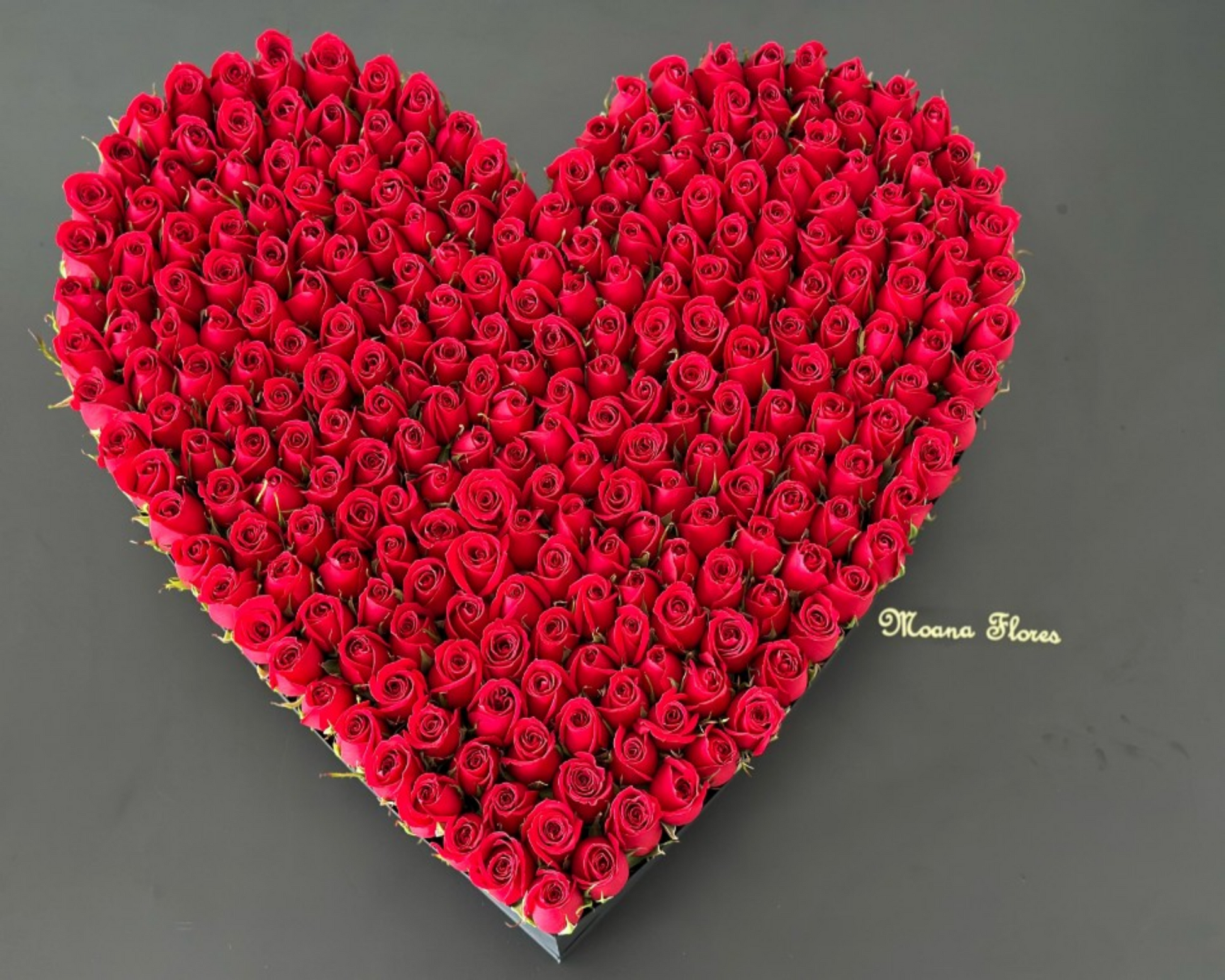 Este imponente arreglo de rosas rojas está cuidadosamente presentado en una elegante caja en forma de corazón negra. Perfecto para expresar amor y pasión con un detalle lleno de volumen y estilo, ideal para sorprender y hacer inolvidable cualquier ocasión especial. Regala un gesto impactante que cautivará desde el primer momento.
